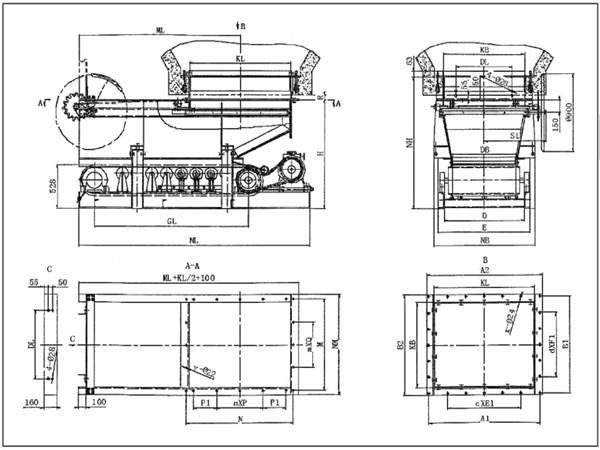 1、通過在給料機的下部設置清料裝置,避免了給料過程中機身周圍落料、回程帶落料的結構方式;