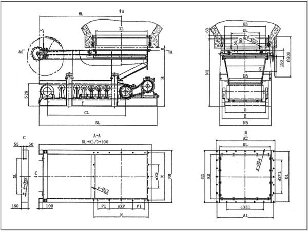 防砸閥門帶式(甲帶)給料機(jī)的閘門下增加了防砸閘門,當(dāng)料倉中的大塊物料落下通過給料機(jī)時(shí),首先了落在防砸閘門上,防砸閘門在物料的重力作用下打開,使物料經(jīng)緩沖后落到甲帶上,甲帶對物料起再一次的緩沖作用。因此,防砸閥門帶式(甲帶)給料機(jī)有效防止了大塊物料砸傷甲帶、皮帶、托輥。