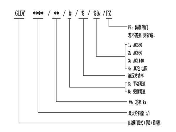 自動(dòng)閥門(mén)帶式(甲帶)給料機(jī)的型號(hào)說(shuō)明: