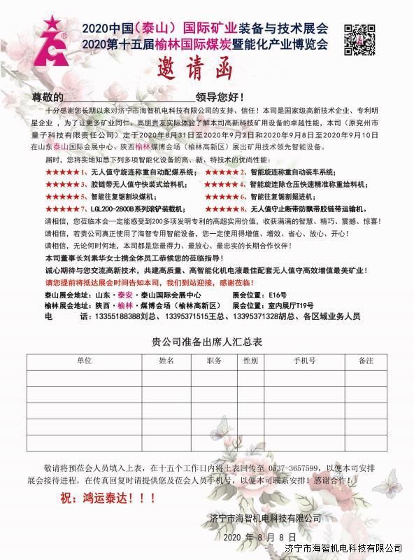 > 邀請(qǐng)函:2020中國(泰山)國際礦業(yè)裝備與技術(shù)展覽會(huì)
